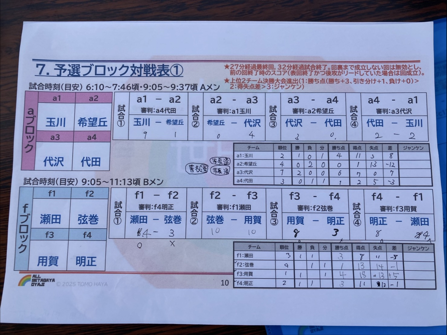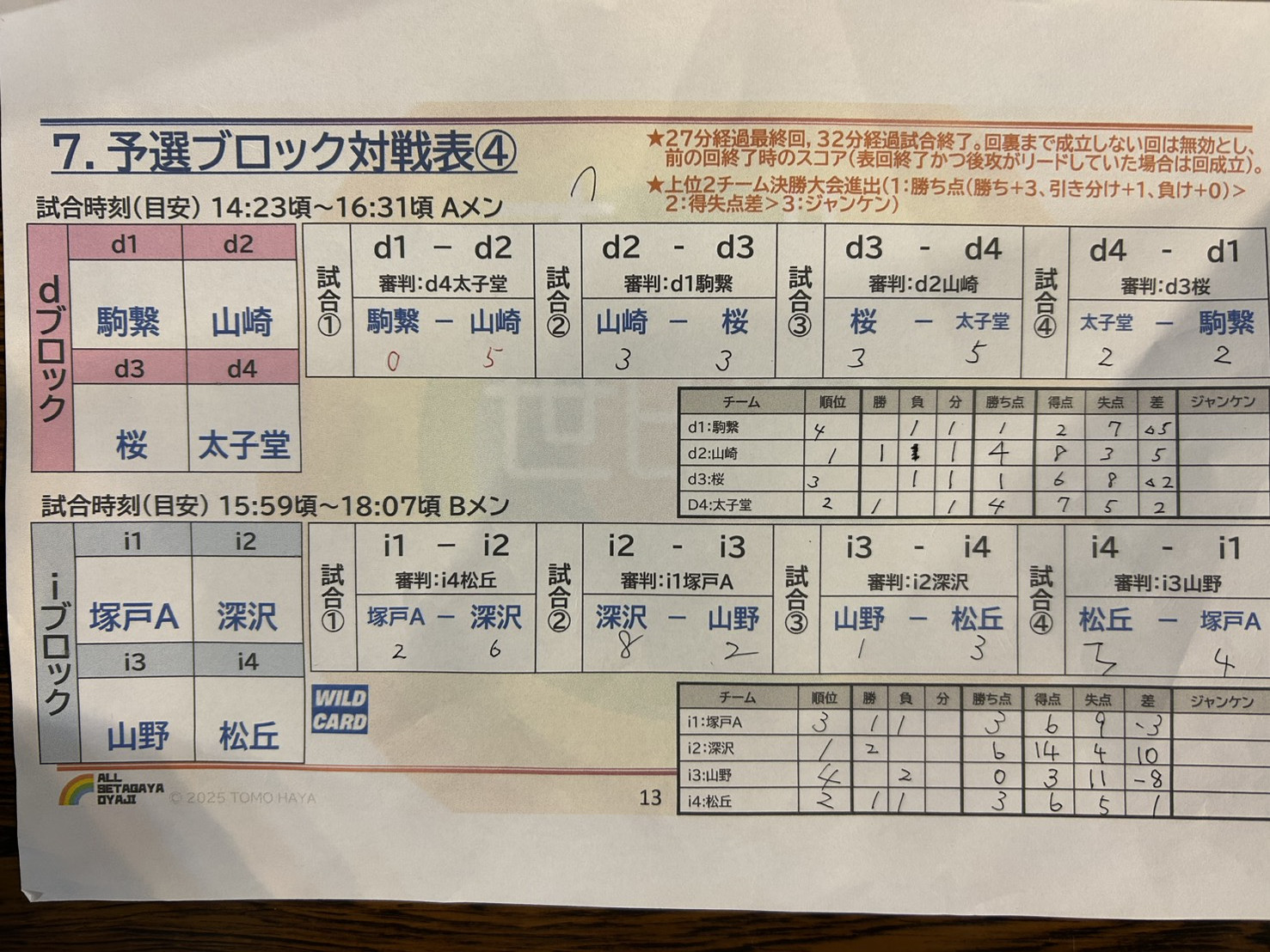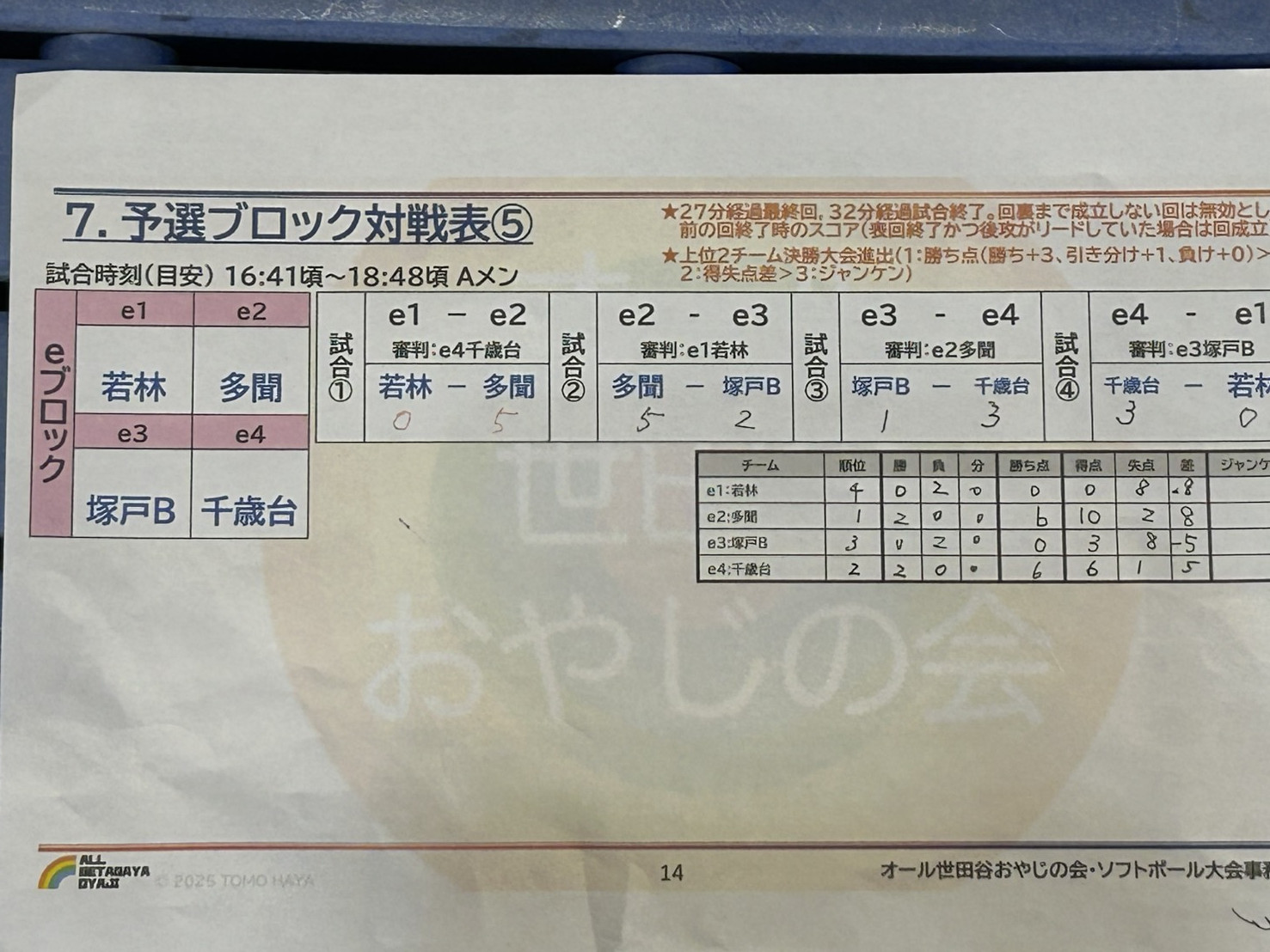 第12回オール世田谷おやじの会ソフトボール大会予選リーグ